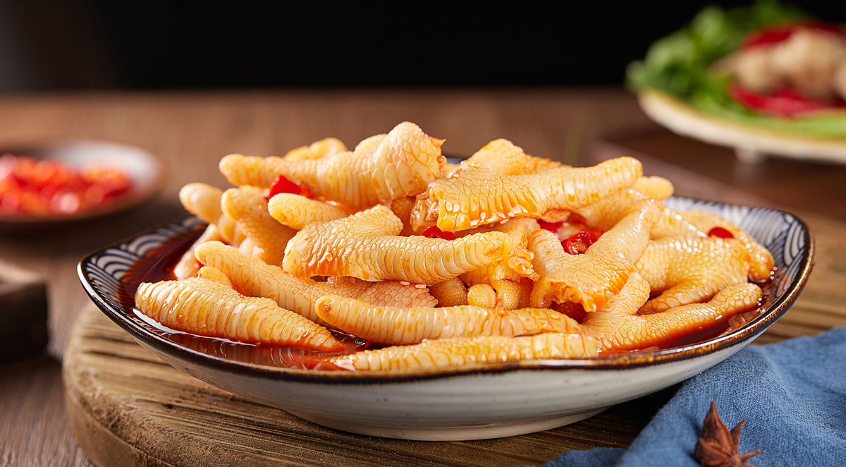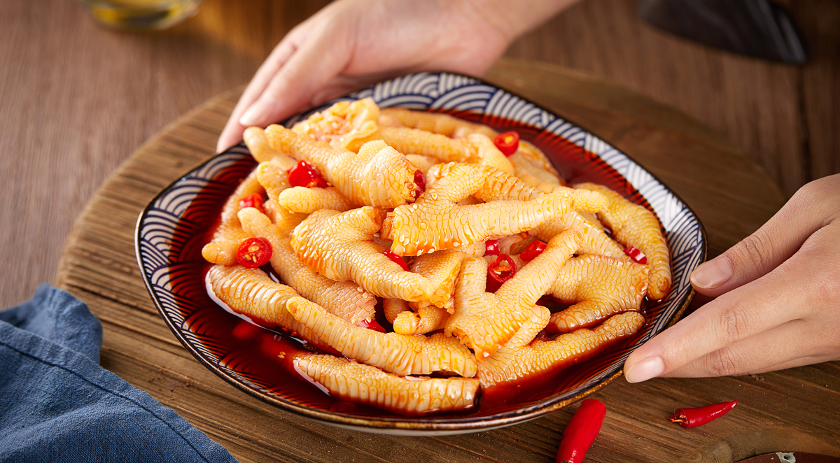 特点:以优质鸡爪为原料,选用天然香料,通过人工控制发酵方法泡制而成。产品色泽美观,香辣纯正,略带乳酸,鸡肉的鲜香与泡菜的酸爽相结合,既好吃又开胃。